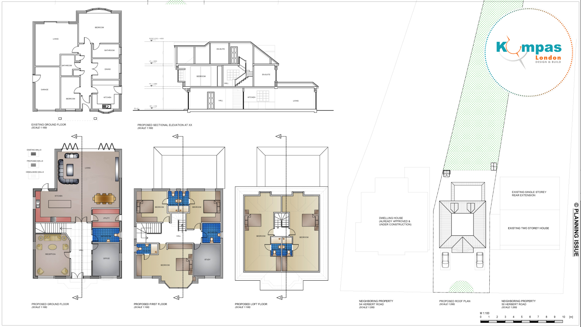 At the ground floor the dwelling house will consist of the following: reception, bathroom, utility room, kitchen / living room, a double bedroom, and the hall area housing the staircase leading to the first floor. At the first floor there will be four double bedrooms with corresponding en-suites and the hall area housing the staircase leading to the loft. The loft comprises the hall, two double bedrooms with corresponding en-suites.